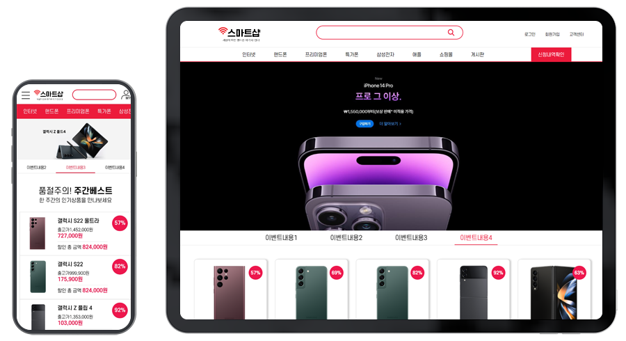 기본 디자인 무료 사용, 디자인 신규 제작시 100만원(VAT별도) - PC, 모바일 메인 페이지만 해당 (세부 페이지는 기본 디자인 이용) - 작업 난이도에 따라 추가 비용 발생할 수 있음 |
